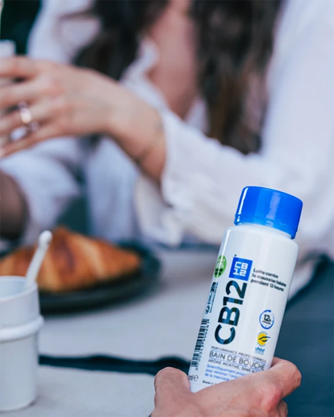 CB12 ist eine Mundspülung, die eine Kombination aus zwei Hauptbestandteilen enthält: Zinkacetat und Chlorhexidin. Diese synergistische Kombination in CB12 bekämpft die Ursache von Mundgeruch für bis zu 12 Stunden.1